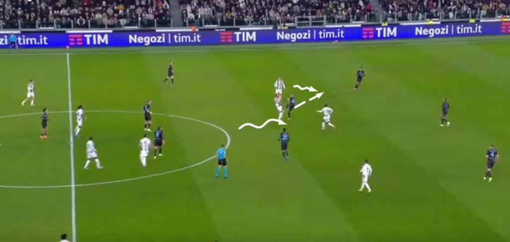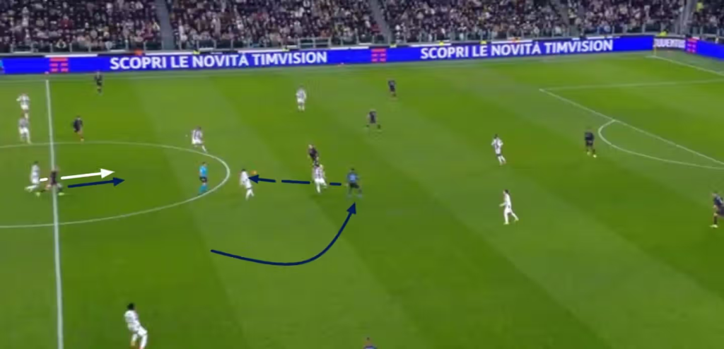 Камбьязо чередовал поддержку Йилдыза на левом фланге с смещениями в центр поля — как с мячом, так и без него — чтобы укреплять и поддерживать игру команды через центр. За его спиной способность Келли к первому пасу и продвижению с мячом позволяла команде подниматься выше по полю. Тюрам же обеспечивал необходимые смены темпа за счёт ведения мяча, смещая баланс и ритм атакующих действий. Смягчать риски потери баланса и компактности команды — что часто является обратной стороной атакующей гибкости, — помогала исключительно ценная способность Локателли читать развитие игры: он выступал первой преградой при высоком контрпрессинге или перекрывал линии передач на нападающих соперника после потери мяча. К этому добавлялись беспощадные превентивные персональные действия в обороне со стороны Калулу, Бремера и Келли.