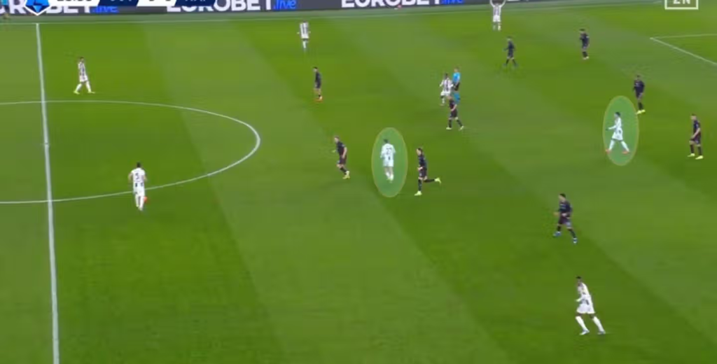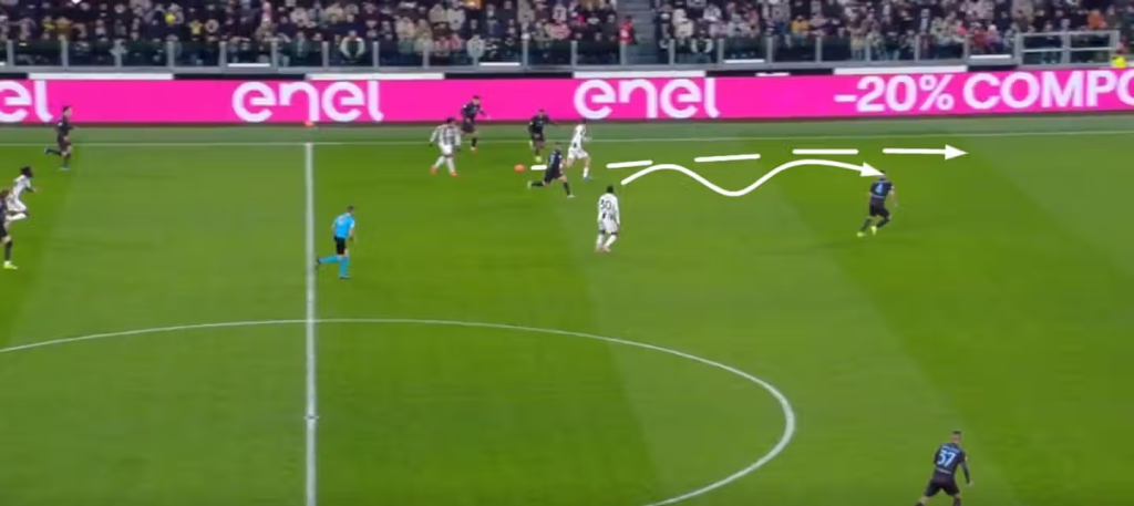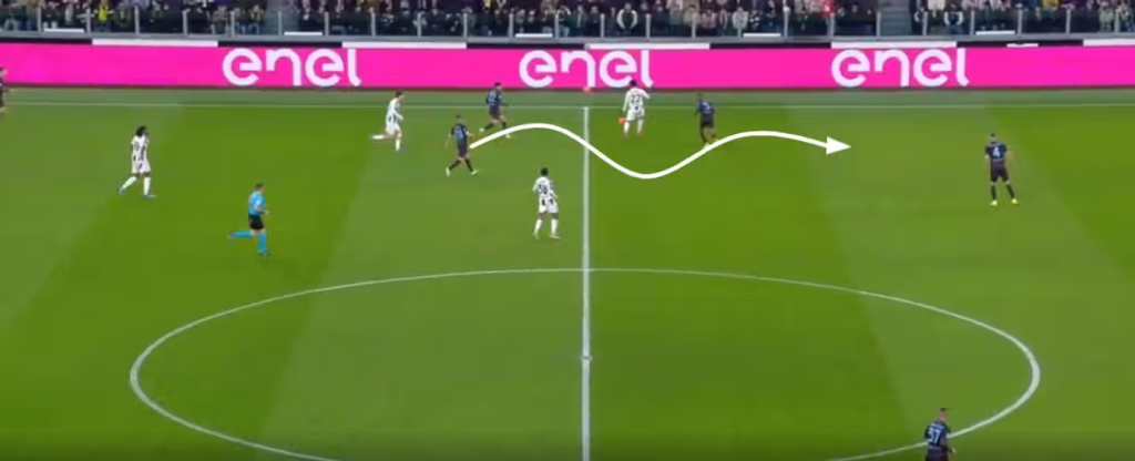 Например, попадание Тюрама в штангу на 19-й минуте стало следствием высокого контрпрессинга, который вынудил Гутьерреса ошибиться. Гол Дэвида начался с мяча, отобранного Локателли у линии штрафной и превращённого в великолепную голевую передачу пяткой с лёта; канадский форвард умело прикрыл мяч от Спинаццолы и пробил мимо Мерета. Атака, приведшая к моменту Консейсау сразу после гола Дэвида, которую затем на линии ворот спас Буонджорно, началась с перехвата Бремера выше центральной линии в борьбе с Хёйлюндом: бразильский защитник, отобрав мяч, продолжил мощный рывок вперёд, отдал передачу Йилдызу, который ассистировал португальцу.