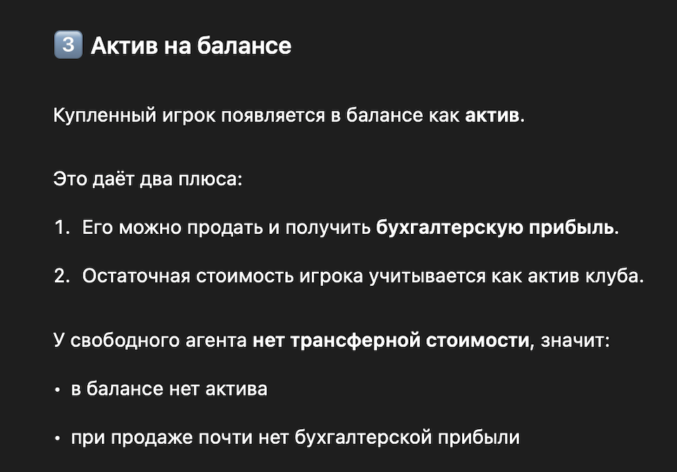 Его можно продать и получить бухгалтерскую прибыль.Остаточная стоимость игрока учитывается как актив клуба.