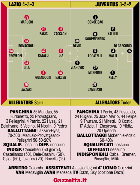 «Лацио»: Проведель, Лаццари, Гила, Романьоли, Марушич, Гендузи, Катальди, Башич, Исаксен, Диа, Дзакканьи.