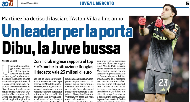 «Один телефонный звонок продлевает жизнь» — говорилось в известной телевизионной рекламе. А на трансферном рынке он может открыть неожиданные сценарии и совершенно новые пути для будущего. Именно такой случай может возникнуть у «Старой синьоры» и лучшего вратаря последнего Чемпионата мира, который своими сейвами помог Аргентине завоевать самый желанный трофей. В последние дни «Ювентус» прощупывал почву по поводу Эмилиано Мартинеса, который считает свою историю в «Астон Вилле» практически завершённой и, похоже, готов сменить клуб летом.