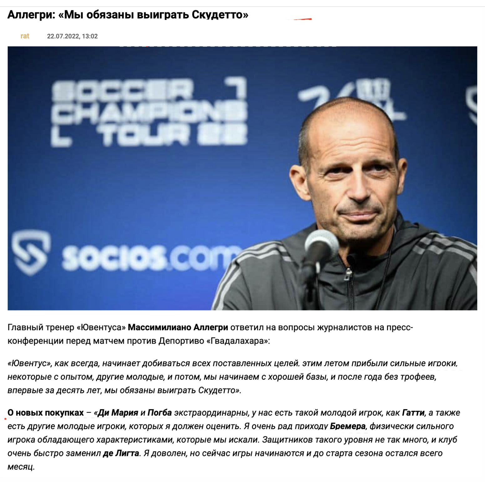 Аллегри все видел сразу во второй приход и был прав с этой… неприятной фразой
