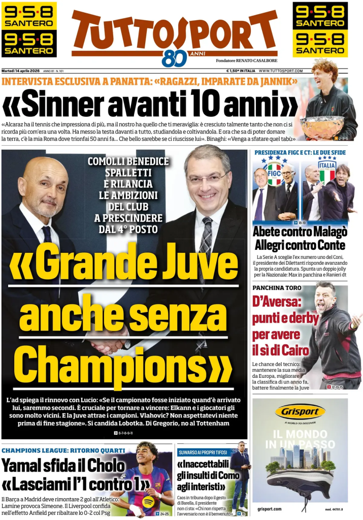 Малаго — Абете за кресло президента ФФИ (Федерации футбола Италии). Тренер сборной: битва Аллегри и Конте. Серия А почти единогласно (19 клубов из 20) выступает в поддержку бывшего президента НОК (Национального олимпийского комитета). Глава любительских лиг также выдвинул свою кандидатуру. Для сборной Италии возник соблазн пригласить Макса Аллегри.