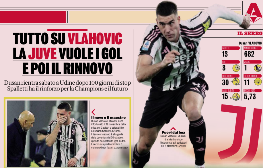 Влахович может стать тем самым «мартовским ударом», который изменит баланс в борьбе за четвёртое место и Лигу чемпионов. За него команда Спаллетти борется с «Ромой» и с сенсационным «Комо» Сеска Фабрегаса, который сейчас опережает туринцев на одно очко. Голландец (речь о игроке «Ромы», пришедшем зимой из «Астон Виллы») серьёзно изменил игру команды Джан Пьеро Гасперини и уже отметился 6 голами в 8 матчах. Спаллетти не ждёт от Влаховича такого же мгновенного эффекта после трёх с половиной месяцев вне игры, но рассчитывает хотя бы на несколько голов — и, главное, на его присутствие в штрафной. С Влаховичем у «Ювентуса» появятся: