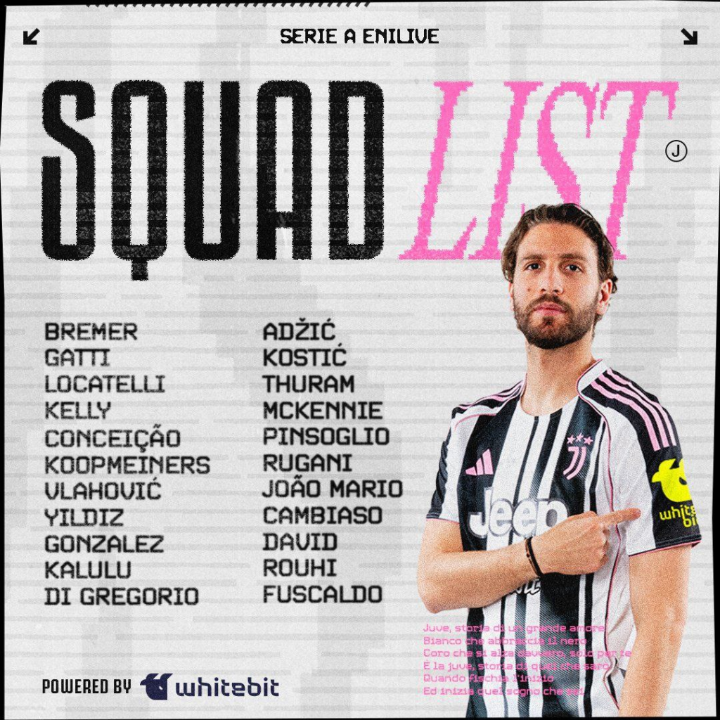 «Ювентус» начинает сезон Серии A 2025/26 домашним матчем против «Пармы», который состоится на «Альянц Стэдиуме» в воскресенье вечером. Ниже представлен список игроков, которых тренер Игор Тудор вызвал на этот матч: